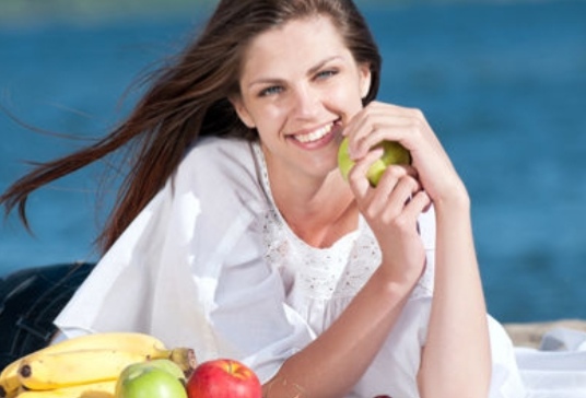 التناول اليومي للفواكه والخضار يعزز من صحة الأسنان، حيث يوجد في هذه الأطعمة فيتامينات، مثل فيتامين C، والمعادن والمواد المضادة للأكسدة التي تحمي صحة الأسنان واللثة.